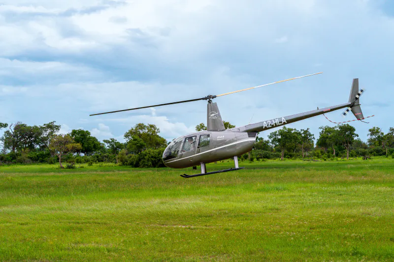 Access to the camp is by air, first by fixed-wing light aircraft from Maun to the Vumbura Airstrip (130km; 25-minute flight), and then followed by a low-level helicopter flight (30km; 10-12 minute flight) directly into Karangoma camp.